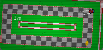 Drive in a circle, collect all the coins to unlock the green coin. Collect the green coin to go to the next lap. Do that 5 times, simple right?